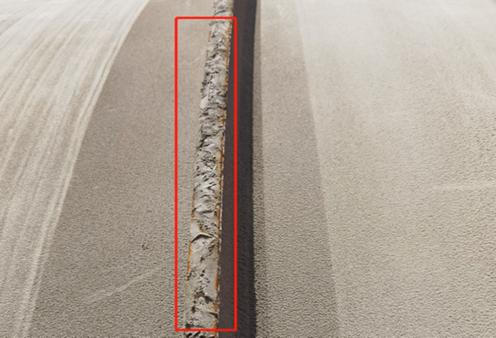 4.阴极保护阳级体安装时滚轮架摆放不规范,钢管滚动过程中摩擦加劲环侧边,造成涂层磨损;
