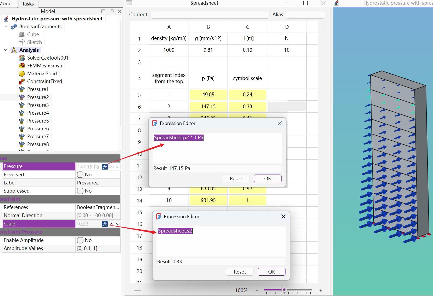 参数化 有限元分析工作台。基本上,它基于您的参数,创建 freecad 文件并分析生成,并在表格中显示所有结果
