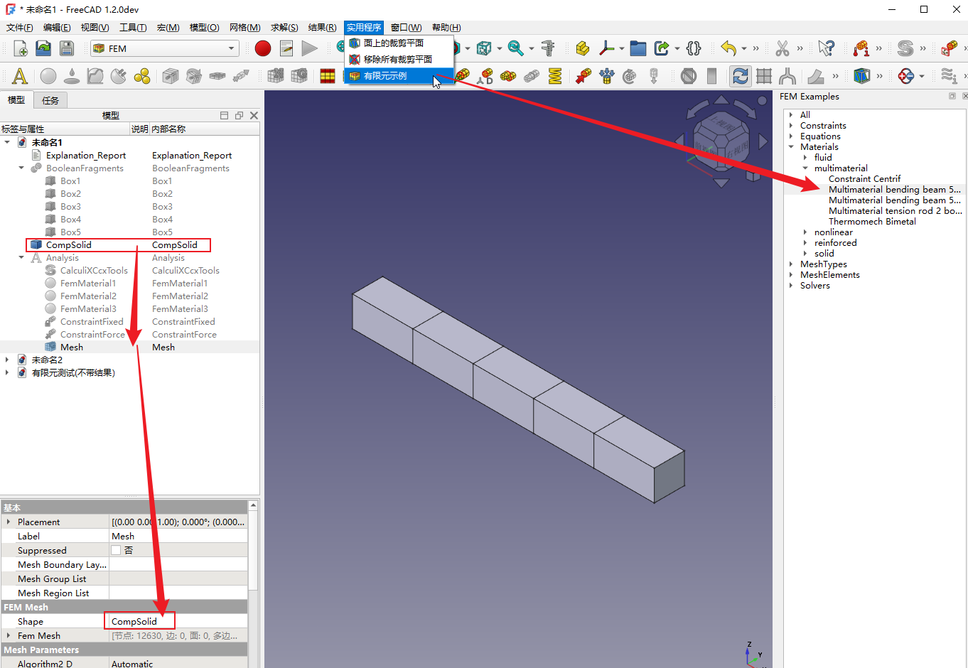 上述思路来FC自带的有限元案例: