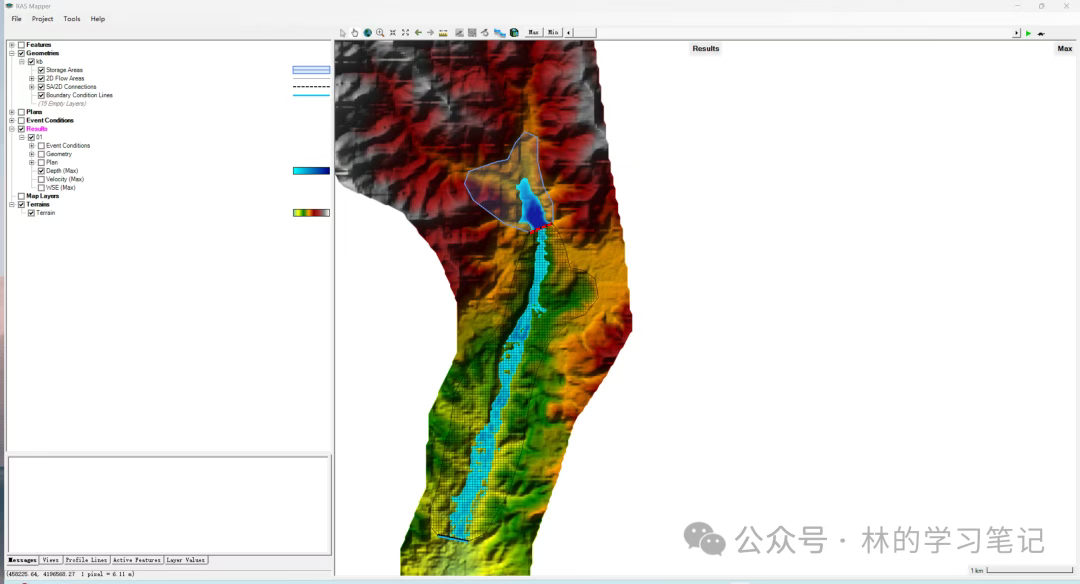 点击compute进行计算。打开rasmapper左侧results进行结果查看。