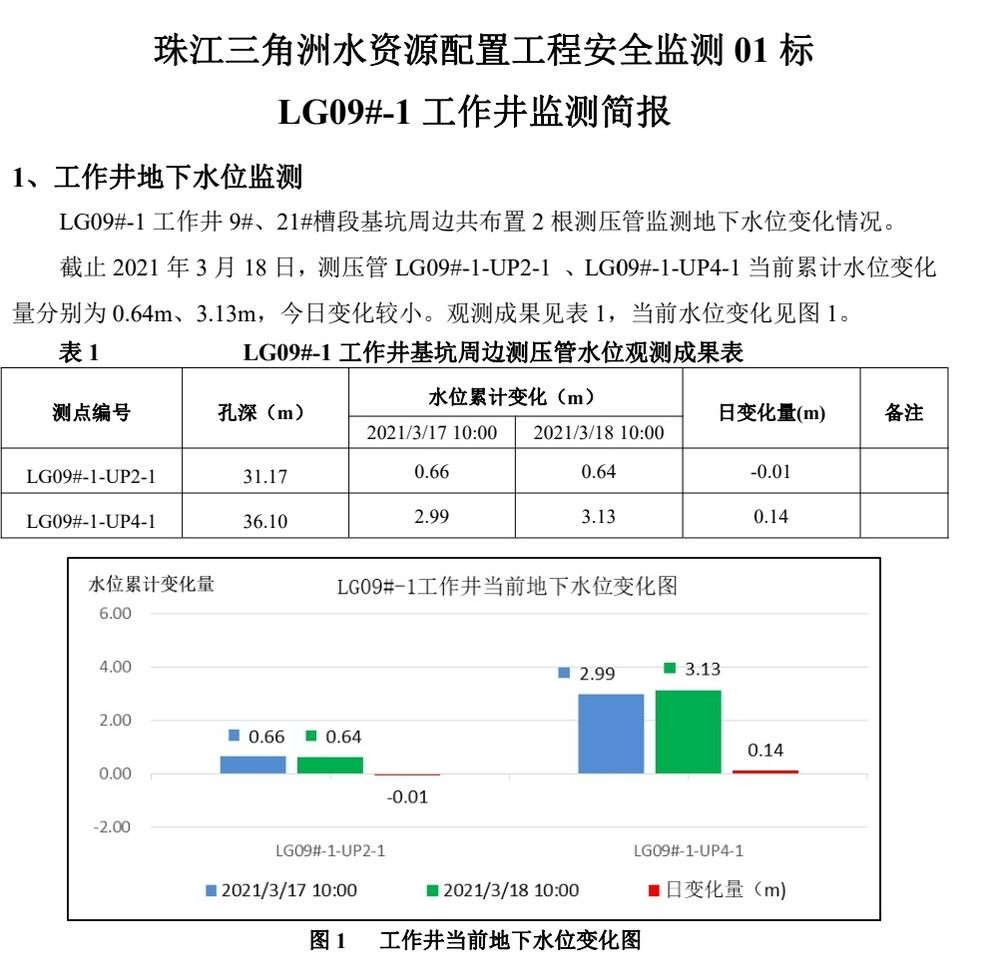 会议首先由施工单位汇报自2021年1月10日启动三级预警,采取相应措施的,取得效果,水位回升、周边建筑物沉降监测数据。第三方监测单位汇报当前工作井监测数据情况,地水位已回升至初始值0.6m~3.13米,周边建筑物地面稳定,满足消警条件。