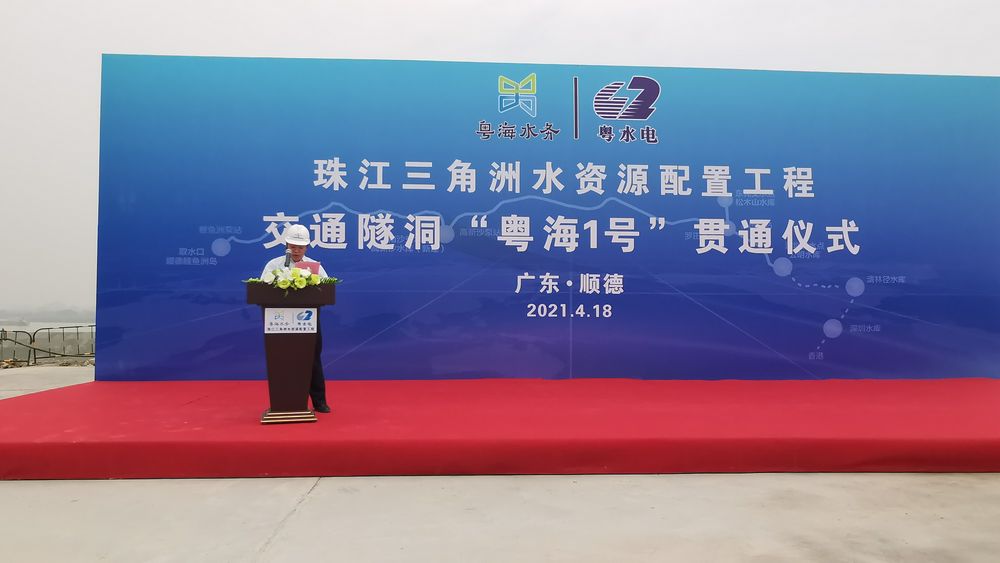 王汇明副总工代表项目设计单位表示热烈的祝贺!向一直关心和支持我院设计和设代工作的各级领导、有关单位表示衷心的感谢!向奋战在施工一线的广东水电二局股份公司同仁们表示亲切的问候!“今天,珠三角工程全面开工以来首个盾构隧洞顺利贯通,标志着工程建设取得了阶段性重大进展,开启了珠三角工程盾构施工接续贯通的高光时刻“。
