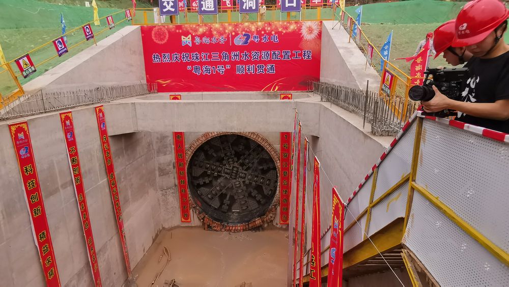 202104181257-2021年4月18日,A2标“粤海1号”鲤鱼洲交通隧洞盾构机顺利出洞