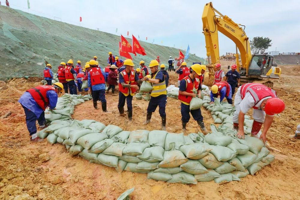 2021年4月28日下午,土建A1标项目部施工工地现场(鲤鱼洲岛)举行2021年防洪度汛应急演练。