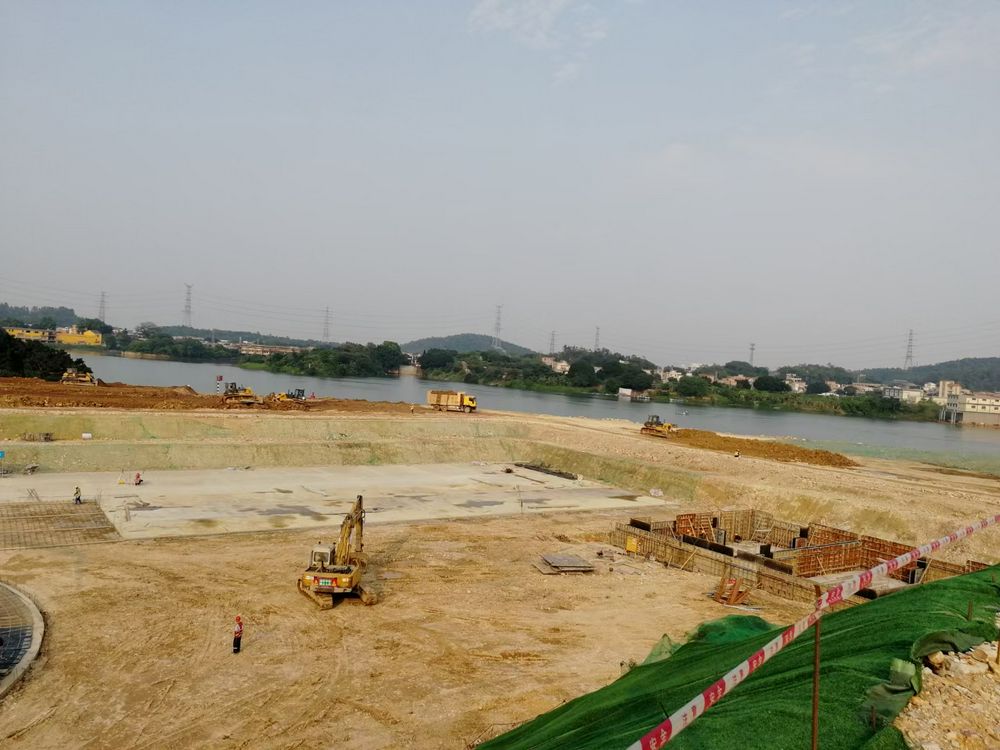 2021年5月1日,在全国人民欢度“劳动节”假期,珠三角工程鲤鱼洲高位水池开始施工。