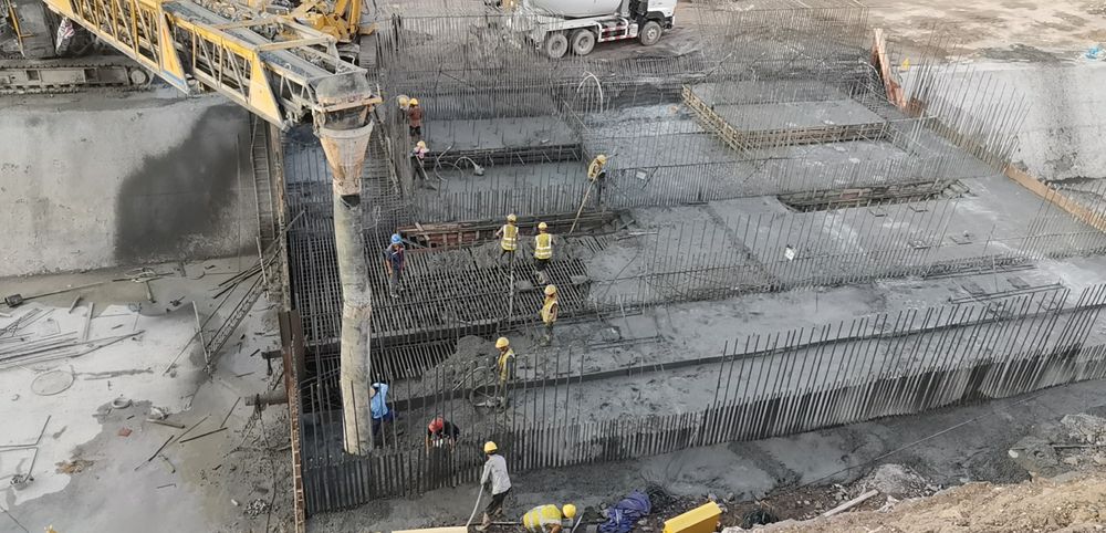 2021年9月3日,土建A1标鲤鱼洲泵站3-4号基础底板砼浇筑完成基础