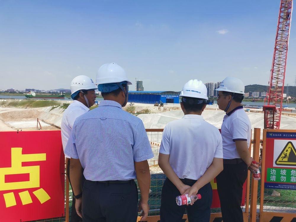 2021年10月6日下午,省委常委秘书长张福海率队到珠三角工程顺德段土建A1、A2标检查调研。佛山市市长郭文海、省水利厅副厅长邹振宇、粤海集团副总经理陈秉恒、珠三角供水公司总经理杜灿阳、粤水电董事长谢彦辉以及公司副总经理严振瑞等相关人员参加调研。
