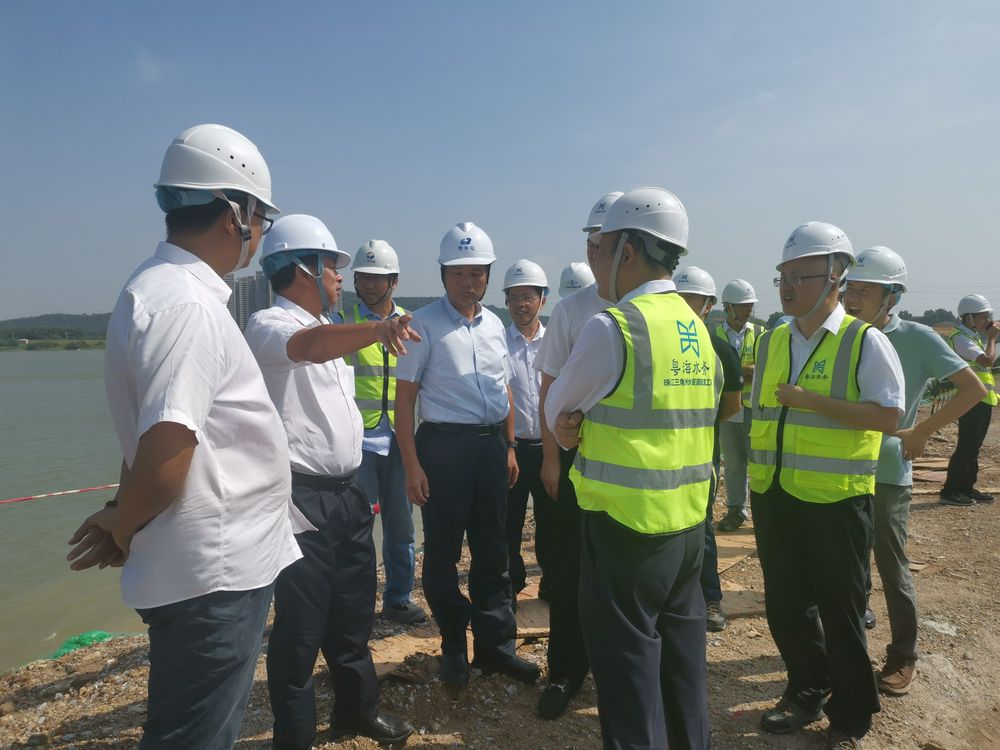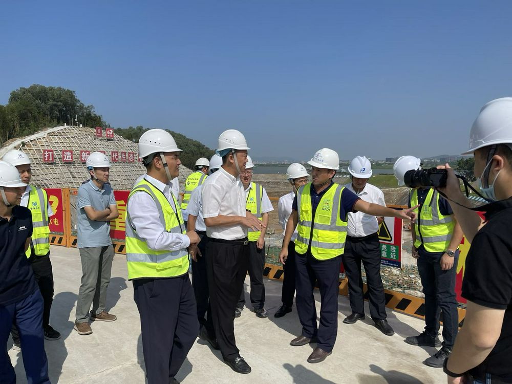 2021年10月11日~12日,粤海集团总经理助理徐叶琴(原珠三角公司董事长),在工程部总经理、珠三角公司杜灿阳总经理陪同下,到顺德段检查指导工作。徐总一行首先前往取水口,详细了解鲤鱼洲泵站的施工进展情况,现场听取各方的汇报。顺德分部欧泽锋、陈文杰陪同检查,并在现场向徐总汇报相关设计概论、工程地质情况。