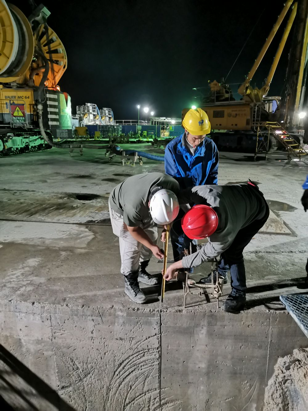 2021年10月17日,土建A1标鲤鱼洲高位水池地连墙4#槽及钢筋笼验收。槽深、槽宽、入岩深度、钢筋长度、宽度、搭接、保护层厚度等满足设计要求。