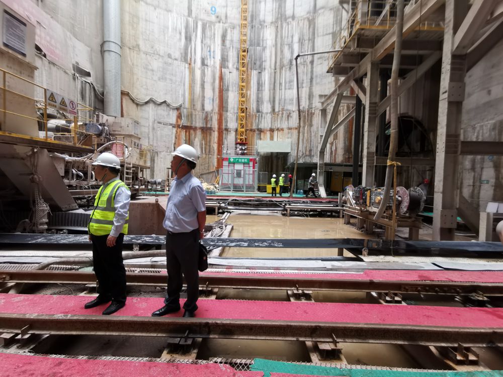 严振瑞一行在顺德分部及监理01标总监李滨陪同下,深入LG05#工作井井底,查看盾构隧洞及工作井底下安全情况,与现场监理、设代交流现场安全管理细节,对设代及监理提出相关注意事项,做好现场自身安全,并监督提醒施工单位严格按照安全生产管理规定,做好相关管理工作,确保工程安全顺利推进。