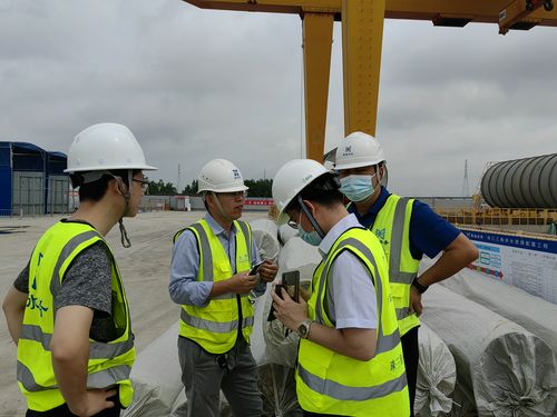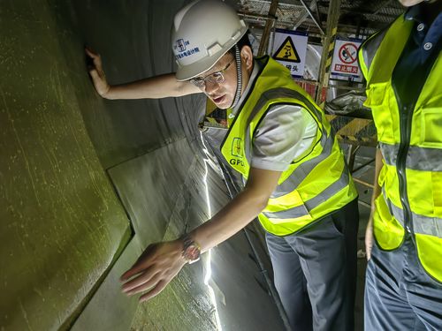 2022年7月6日,施工分院副总工兼珠三角项目专业负责人张武在设代处顺德分部部长欧泽锋陪同下,到土建A4、A7标检查输水隧洞复核型排水板、内衬钢管安装等工序施工质量情况,并与珠三角公司安质部经理耿爽在施工现场就排水板的泡沫板检测指标、产品质量等事项进行工作交流。