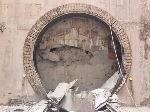 2022年8月16日下午15:00,粤海18号盾构机顺利出洞,安全到达接收。