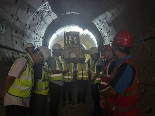 检查组一行前往A5标LG09#、LG09#-1工作井、A4标LG08#、LG07#工作井工区及内衬钢管安装情况。现场察看了两个项目的建设进展、文明施工等情况,详细了解了盾构转序工作以及内衬钢管安装工艺、工序、工法及相关技术难点,听取了内衬钢管自密实砼浇筑完成情况、面临的困难等情况的汇报,并提出相关指导意见。