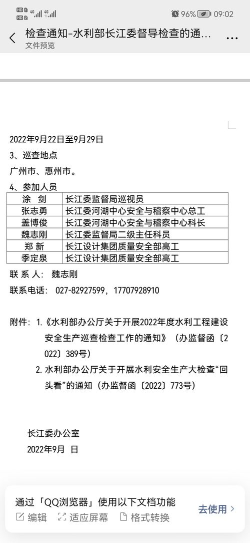 长江委办公室关于开展2022年度广东省水利工程建设安全生产巡查及水利安全生产大检查“回头看”督导检查的通知广东省水利厅:受水利部委托,按照《水利部办公厅关于开展2022年度水利工程建设安全生产巡查检查工作的通知》(办监督函〔2022〕389号)和《水利部办公厅关于开展水利安全生产大检查“回头看”的通知》(办监督函〔2022〕773号)要求,长江委定于2022年9月下旬对广东省开展开展水利工程建设安全生产巡查和水利安全生产大检查“回头看”督导检查。