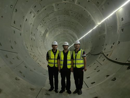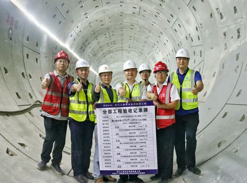 为确保顺利通过验收,项目团队坚持“安全第一,确保质量”的原则,科学组织、精心筹划、周密部署,充分发挥参建员工的积极性、主动性和创造性,不断吹响大干快上的战斗号角。先后克服了场地限制、交叉作业等困难,自2022年8月29日起,共组织了4次区间盾构隧洞分部验收,全部评定为优良。从首台盾构机刀盘抵达地连墙到区间盾构隧洞分部工程全部顺利验收,转序施工作业仅用时64天,刷新了珠三角工程全线记录!在项目建设中,项目团队全力以赴,实现了全线首台钢套筒盾构区间顺利贯通。粤海16号单线月平均完成115环、172.5m;粤海17号单线月平均完成105环、157.5m;粤海18号单线月平均完成117环、175.5m;粤海19号单线月平均完成126环、189m。A5标月平均掘进463环,694.5米,并连续12次夺得建设单位“龙虎榜”榜首。此次验收顺利通过,为珠三角工程早日完成全线通水目标奠定了良好的基础,同时标志着珠三角工程A5标全面进入盾构隧洞内衬钢管安装阶段。