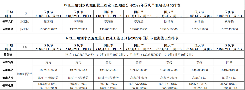 一是全力抓好安全生产工作,国庆节值班期间,做好工地安全防范措施,确保行车安全、用电用火安全等,设代车须按照要求统一交由设代处总部安排,杜绝公车私用。
