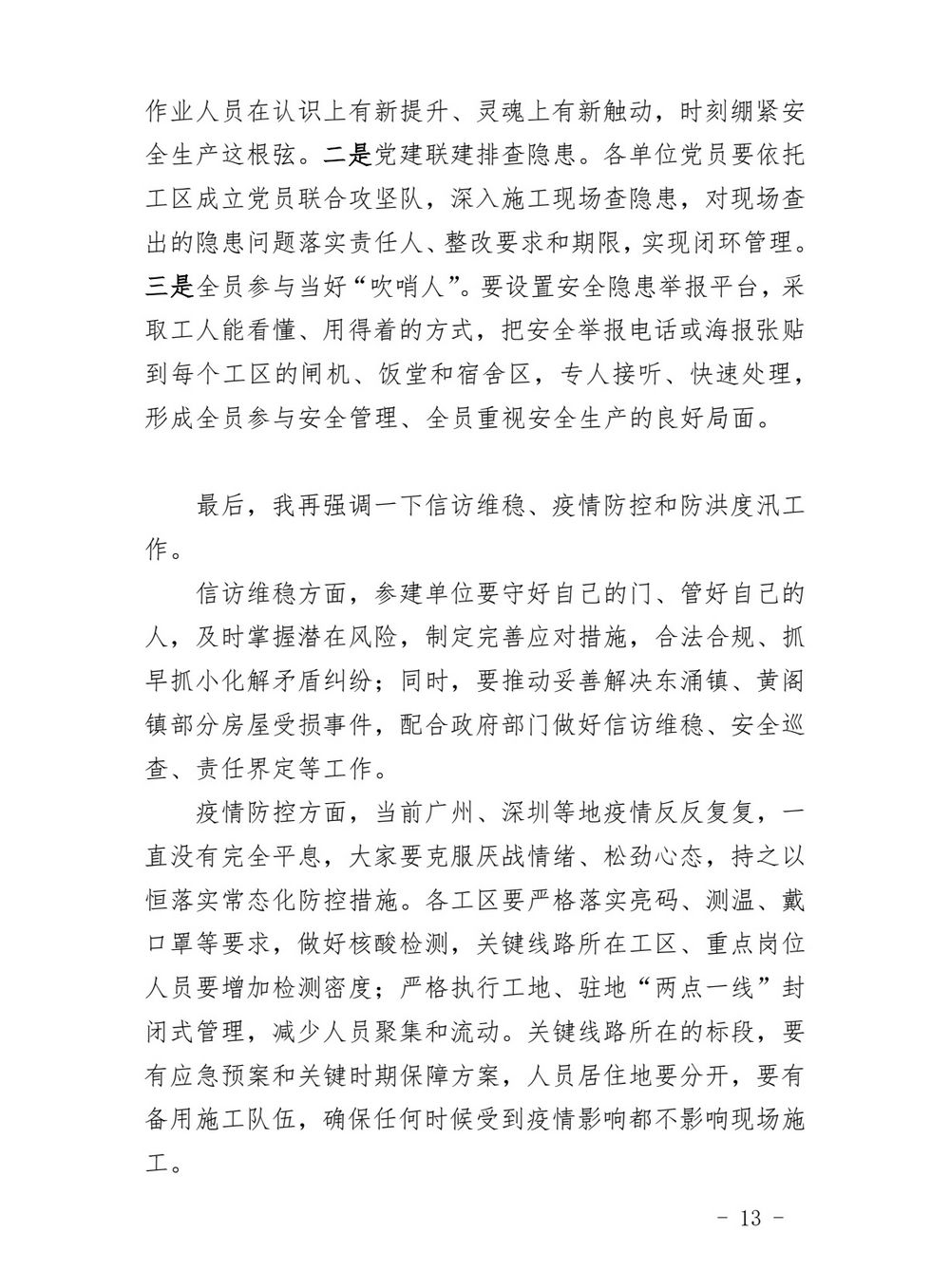 顺德分部部长欧泽锋传达了公司召开重点防护期总体安全保障工作会议精神,并学习了《广东粤海控股集团有限公司重点防护期总体安全保障工作方案》、《广东省水利电力勘测设计研究院有限公司重点防护期总体安全保障工作方案》,要求做好疫情防控、安全生产等工作,同时须坚守安全“红线”、“底线”及“生命线”。