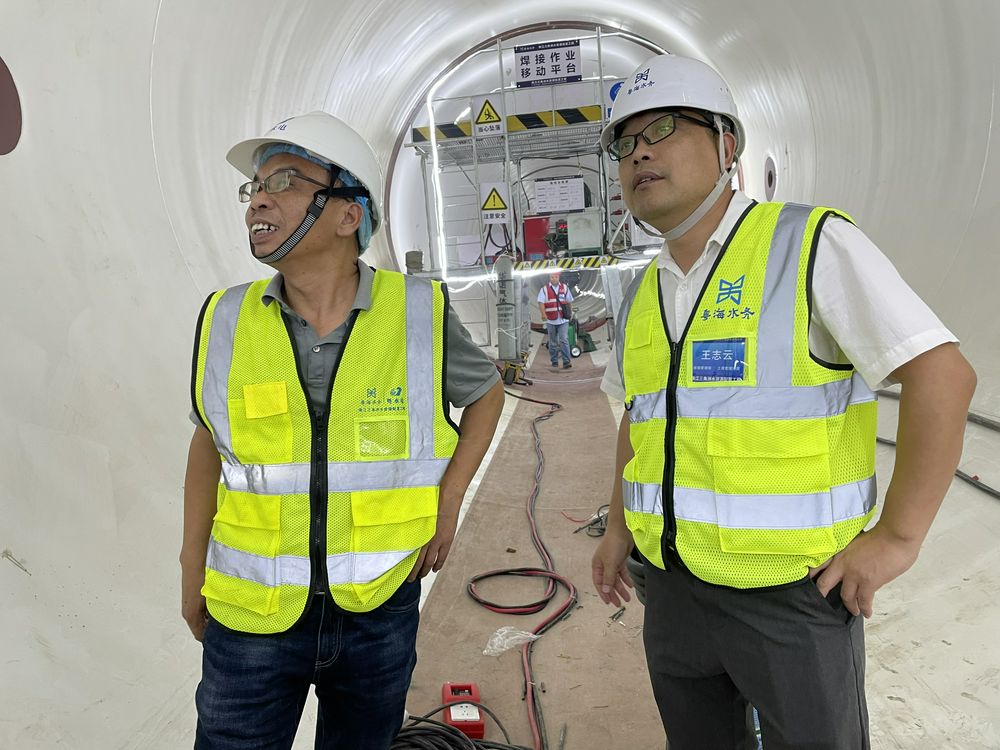盾构隧洞内衬钢管施工。