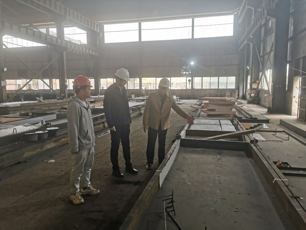 2023年2月14日下午,设代处主任秦晓川在科研负责人欧泽锋、侯世超陪同下到杜拉公司惠州生产基地,检查珠三角工程超高性能砼运用于盾构工作井研究科研课题UHPC免拆模板、型钢UHPC组合梁结构制作,详细了解目前科研课题进展情况,存在问题,指导科研小组工作。