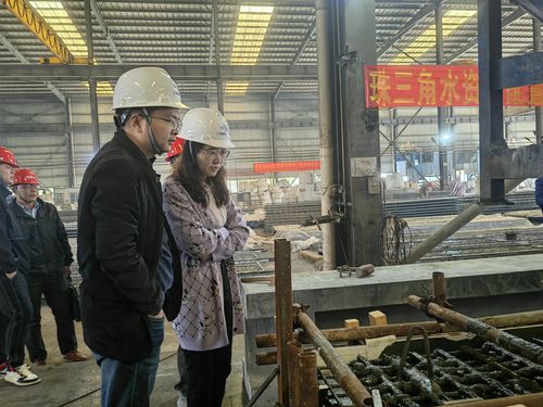 设计监理黄委院专家尹赜、马总到试验现场查看试验梁、板制作过程,详细了解目前进展、存在问题,与设计团队负责人欧泽锋进行现场沟通交流。