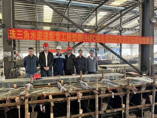 2023年2月16日上午10:00,为解决珠三角工程盾构工作井超深、大跨度、异形结构问题,设计团队提出采用超高性能砼免拆模板作为操作层楼板模板支撑体系,减少施工辅助措施的脚手,以及减少运行期工作井顶盖结构的运行维护问题,通过科研试验方式验证水利工程首次运用超高性能砼的1:1足尺寸试验,在惠州工厂开展,A1~A7标各施工单位负责人参加,并全程参加浇筑过程的观摩。