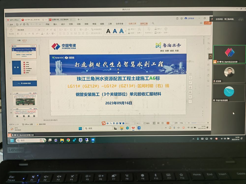 2023年9月16日,监理03标主持召开A6标盾构隧洞内衬钢管重要隐蔽单元工程验收。欧泽锋代表设计通过视频参加本次验收会议。