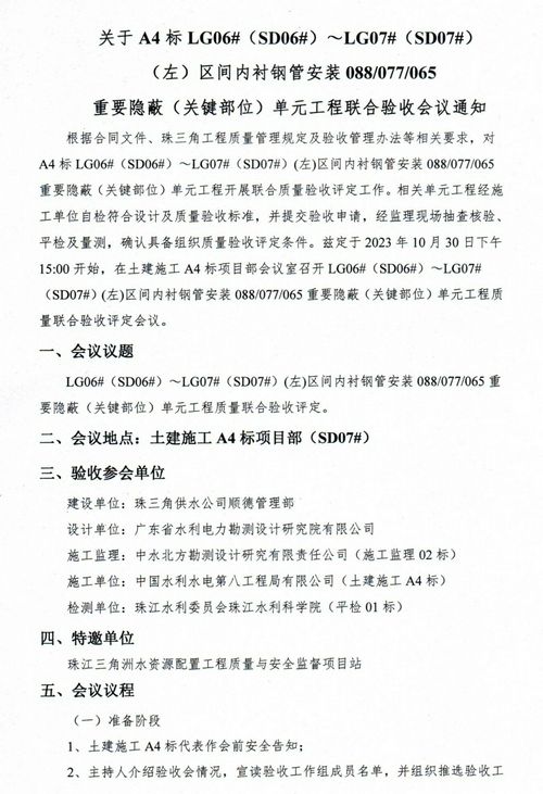 2023年10月31日上午,监理02标主持召开A4标输水隧洞内衬钢管重要隐蔽工程单元(LG06#-LG07#)左线验收会议。刘婵玉通代表设计参加本次验收会议。