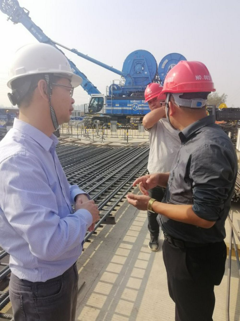 A2标现场指导鲤鱼洲交通隧洞基坑支护钢支撑安装。