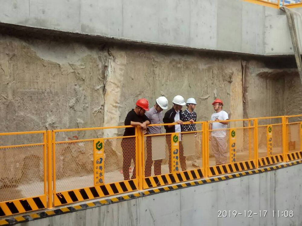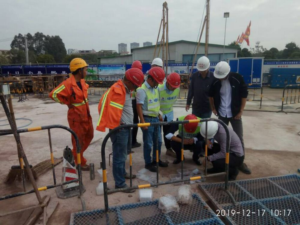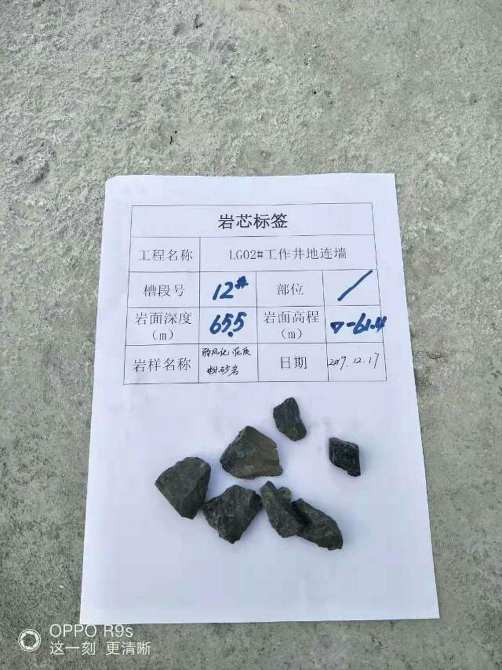 2019/12/17 1、上午9:30-10:30,设代处副部长陈文杰、成员陈祯平在A4标LG06#、LG08#工作井进行地质交底,主要内容有地连墙成槽地质验收(弱风化基岩面和终槽地质验收)流程、施工单位地质补勘、铣槽不同深度石渣样风化分带的判定等,顺德管理部刘灿平、02标监理刘文志一同参加。