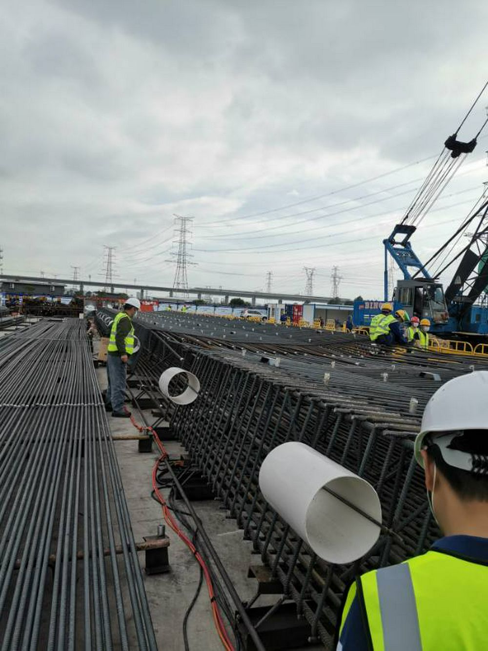 2020年春节不同寻常,在科学规范落实好各项疫情防控和安全生产措施的前提下,B4标各参建单位通力合作、担当作为,积极有序推进项目复工,千方百计加快建设进度。2月28日,GS10工作井首幅地连墙钢筋笼及槽基通过验收,深夜钢筋笼顺利完成吊装。