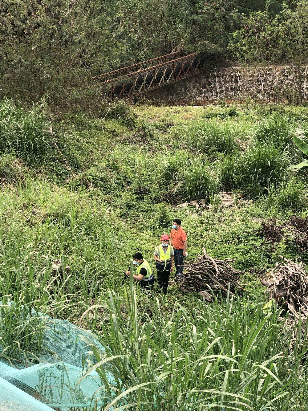罗田泵站进场道路的补堪工作于今天下午复工,钻机设备与人员进场,并于现场放孔,均在院防疫指导要求下进行作业。现场补勘按设计图纸在新建的三座桥各桥墩处布孔,计划钻孔14个,预计总进尺360m。