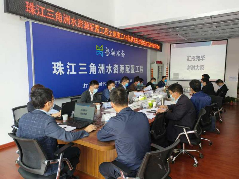 2020 年 3 月 10 日下午,施工 A4 标在顺德召开了《盾构机选型及适应性分析方案报告》专家论证会。顺德分部部长欧泽锋参加会议,会议邀请原珠三角项目前期指导项目设计的广东华遂公司易觉,广州地铁设计院勘察设计大师史海欧作为特邀专家参加评审会。