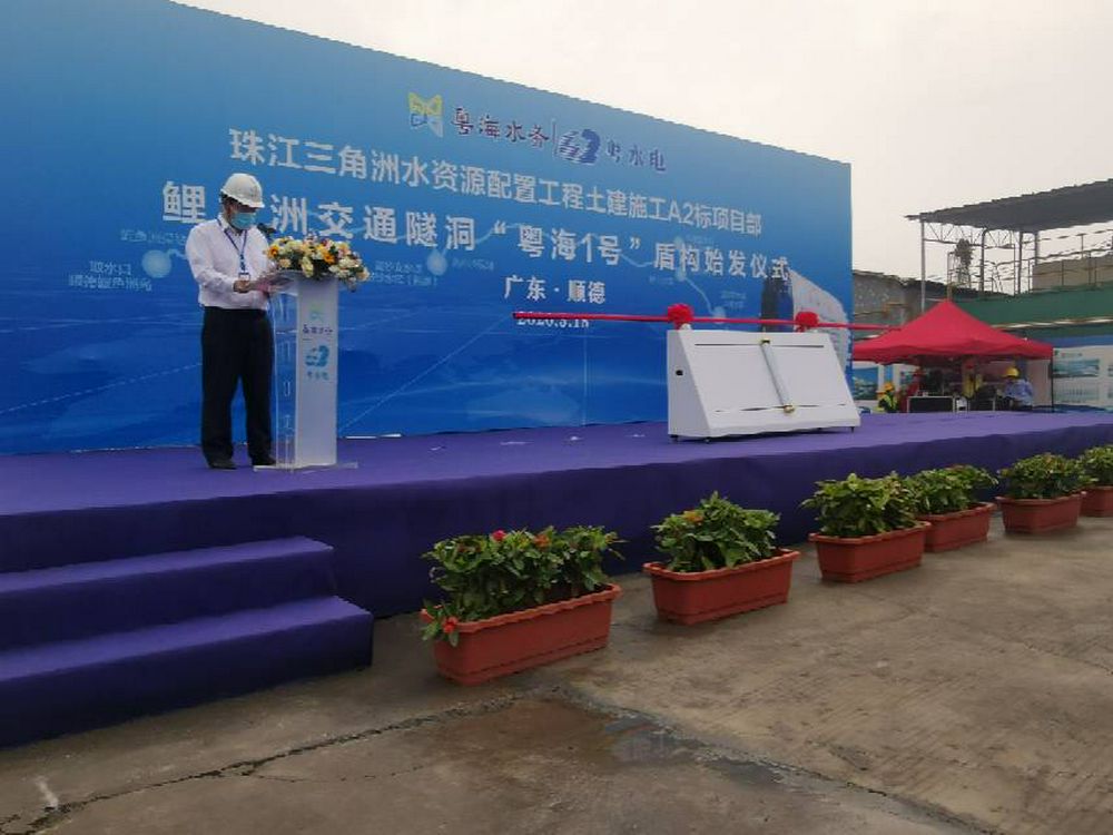 2020年3月18日下午16:00随着“粤海1号”盾构机刀盘开始缓缓转动,珠江三角洲水资源配置工程再次迎来全面开工后首台盾构机“粤海1号”正式始发掘进重要里程碑时刻。粤海集团总经理蔡勇,建工集团总经理马春生、省水利厅副厅长邹振宇、项目业主珠三角供水公司董事长谭奇峰、总经理杜灿阳、属地政府、业主单位、施工单位、设代处顺德分部、院监理公司代表及王伟理事长、严振瑞总工、李滨副总工、郭威部长出席仪式,共同见证这一重要时刻。