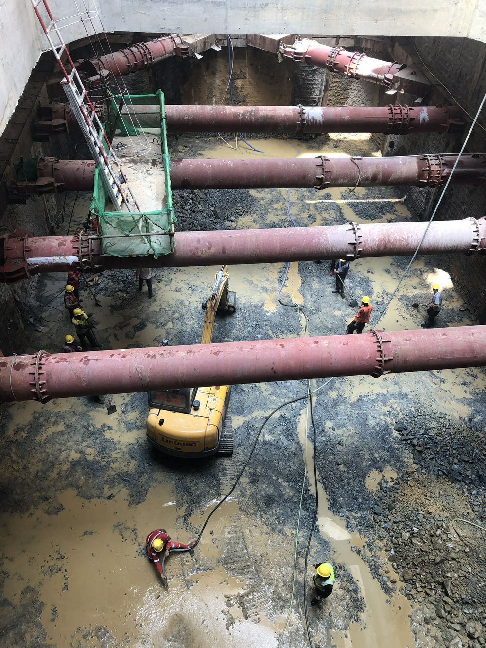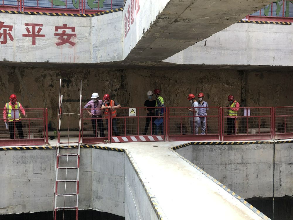 23日,SZ02#工作井已开挖至设计底板高程,该井的开挖工作已全部结束。罗田设代分部李军、卢全祥参与SZ02#工作井底板现场四方联验。底板开挖至高程-15.74m,达到设计要求高程,井底基岩为弱风化花岗片麻岩。