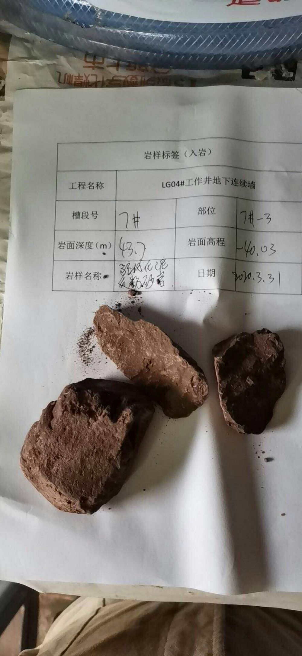(1)上午10:00,顺德分部设代处副部长陈文杰、设代成员陈祯平,在A2标LG03#工作井进行现场巡视,目前LG03#工作井正在进行工作井的开挖及内衬结构施工,已开挖完第二层,井底面标高-4.28m,地质情况是淤泥质黏土,软塑状,局部夹有淤泥质粉细砂及淤泥质砂质黏土,对比前期设计院地勘资料,吻合。
