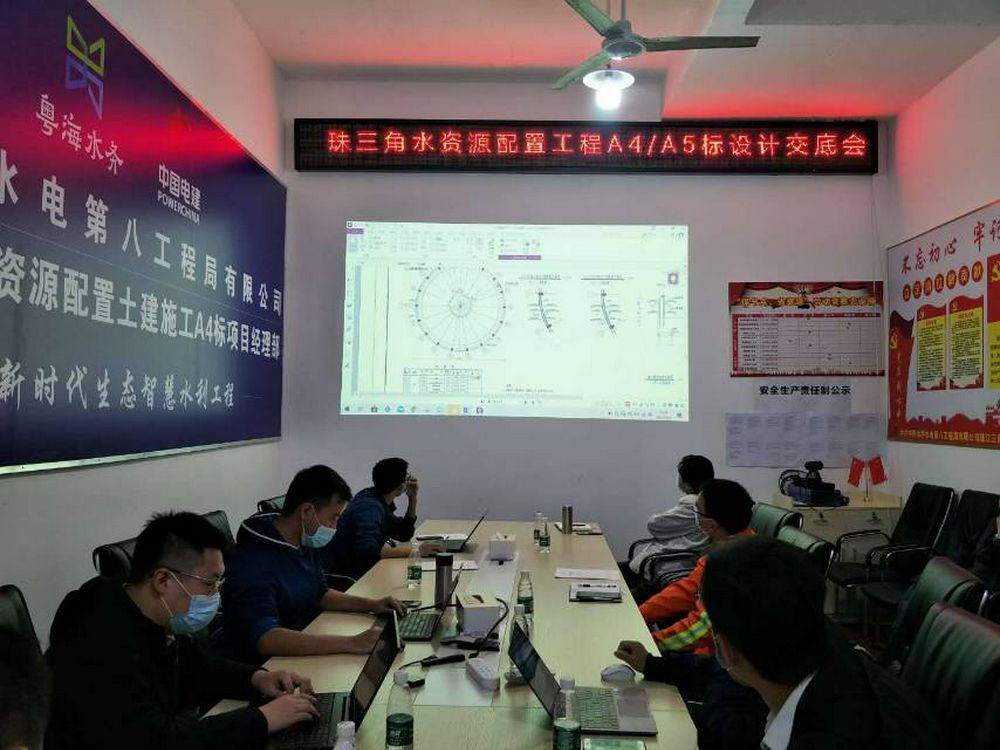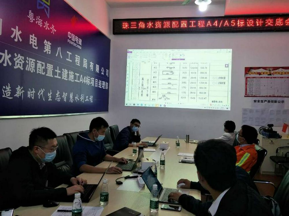 2020年4月3日,监理02标中水北方在施工A4标项目部会议室组织召开施工A4标,A5标施工图纸会审及设计交底会议,顺德分部部长欧泽锋代表设计,对施工图纸施工专业LG06、LG08、LG09#-1第四册,水工专业LG06、LG08、LG09#-1第一、二、三册,机电专业等图纸进行设计交底。