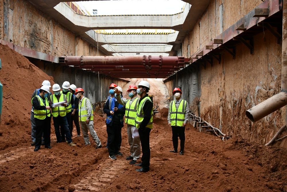 4月7日下午,院副总工王汇明来到C1、D2标各施工现场指导工作,与现场施工单位沟通交流,并就目前的施工问题做出专业方面建议。目前,SL01#工作井已完成压顶梁施工;2#TBM主隧洞钻爆法段已进洞12m,洞身围岩为全风化石英岩,围岩类别为Ⅴ类;罗田泵站进场道路完成施工钢便桥;SZ02#工作井第七层侧墙钢筋安装。