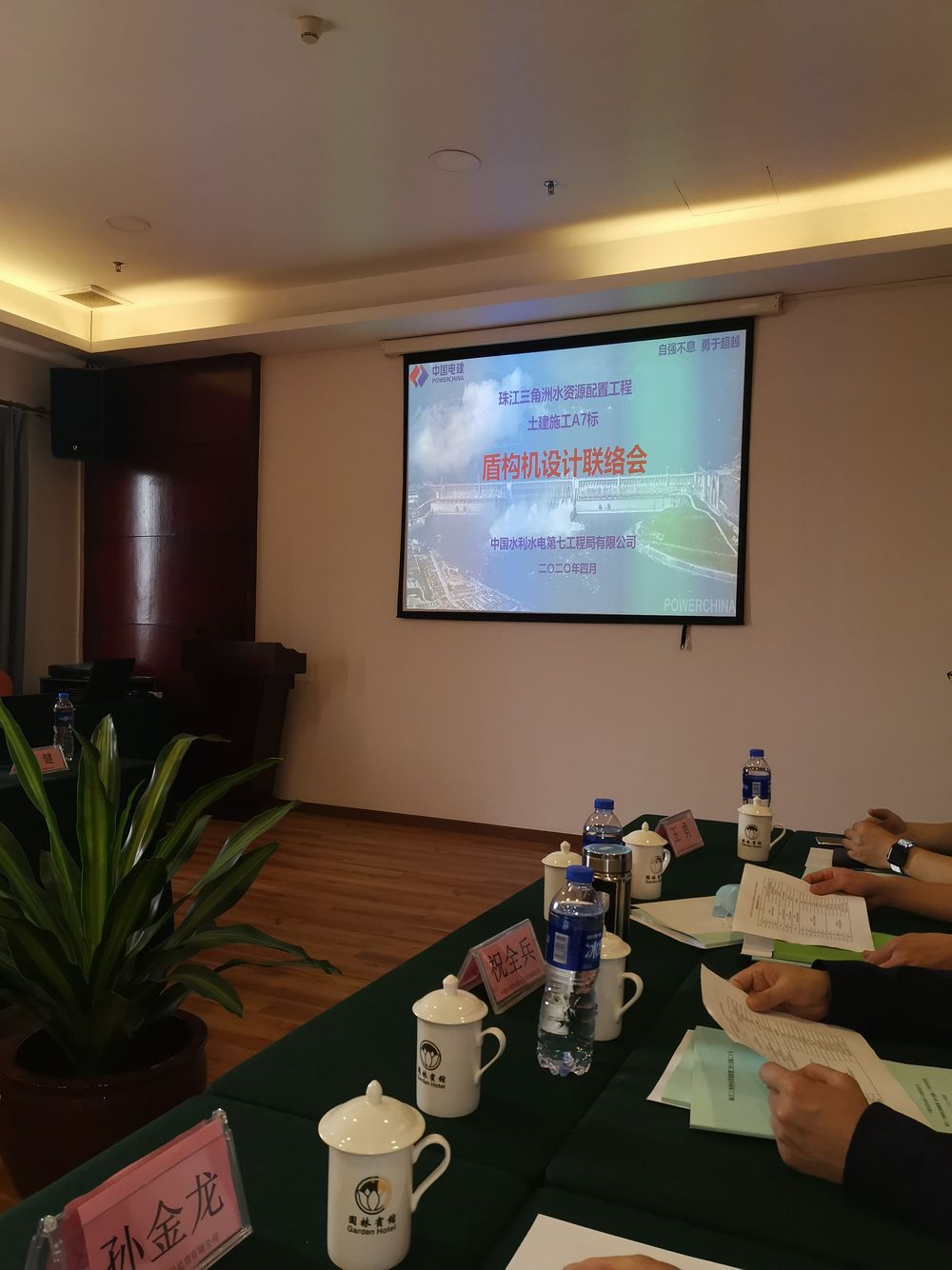 2020.04.10上午9点半,珠三角公司南沙管理部副总郭清华、李旭辉,管理处乔少博;设代处南沙分部赖伟茂、A7标祝全兵、瞿加俊等;平行检测王勇;新珠监理孙金龙、唐静、古浩亭;轨道交通贺小玲;中铁工程装备集团刘健、赵康峰、胡静萍等在大岗镇园林宾馆召开A7标盾构机设计联络会。