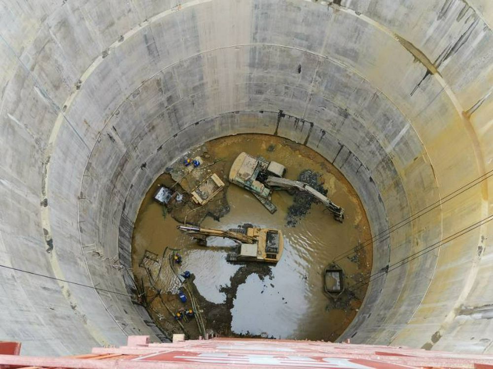 上午10:30,与监理部邱立明部长到B3标GS05井查看第10层开挖情况,基坑积水较多,抽排不力,一台炮机作业,进度不理想,开挖面于水下。