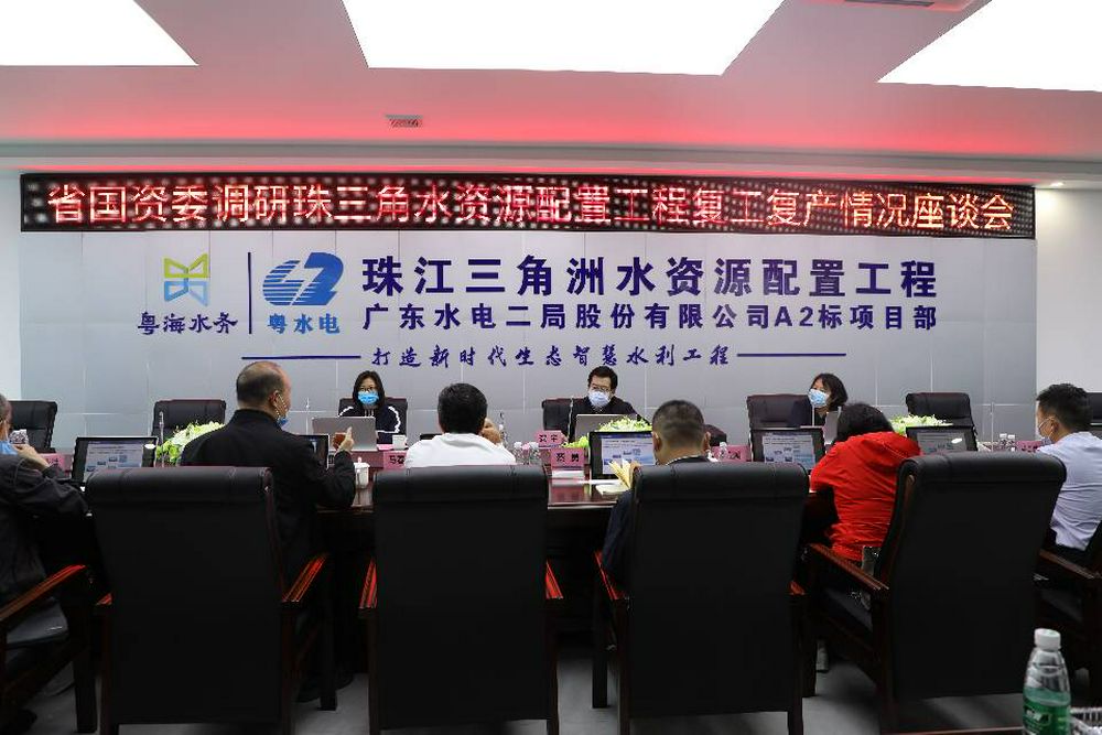 2020年4月23日下午,粤海集团总经理蔡勇及建工集团总经理马春生陪同省国资委党委副书记、副主任贺宇前往顺德管理部检查珠三角复工复产情况并召开座谈会,听取项目业主总经理杜灿阳汇报工程新冠疫情防疫及复工情况,项目进展等工作汇报。