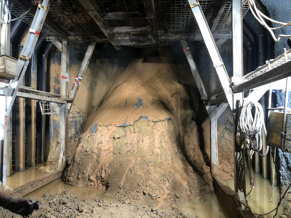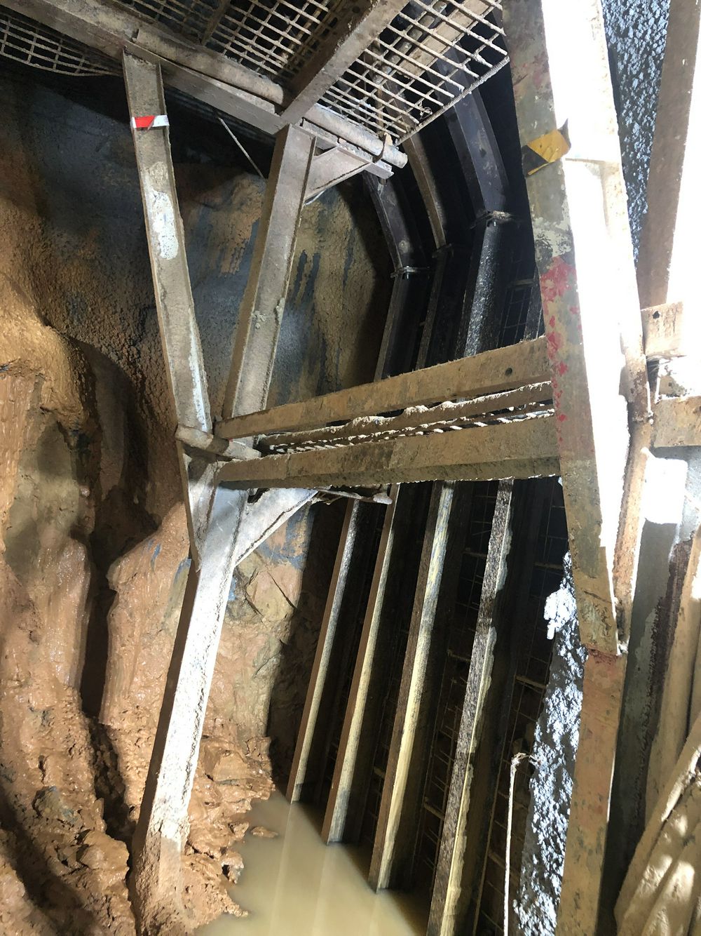 杨屋检修交通洞开挖至桩号0+780,掌子面以全风化石英岩为主,左右两侧底角出露强风化岩;洞室自稳能力差,围岩类别为V类。目前洞内正在进行支护加固处理,预计2天后处理完毕继续开挖。