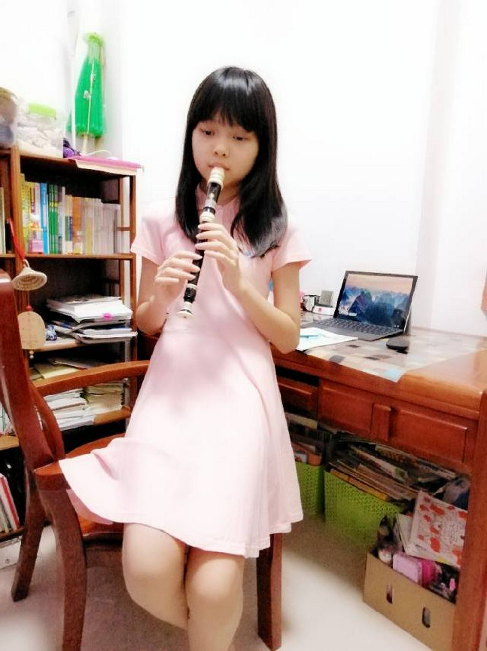 宅在家里,钢琴、竖笛成为了我的好朋友,优美的音符从指间流出,让我在享受美的过程中得到了放松。我弹奏《我和我的祖国》、《菊次郎的夏天》抒发心中对伟大祖国的热爱;吹奏《欢乐颂》、《春之歌》,欢快的节奏让我相信疫情很快会过去,又能和小朋友们追逐嬉闹了。