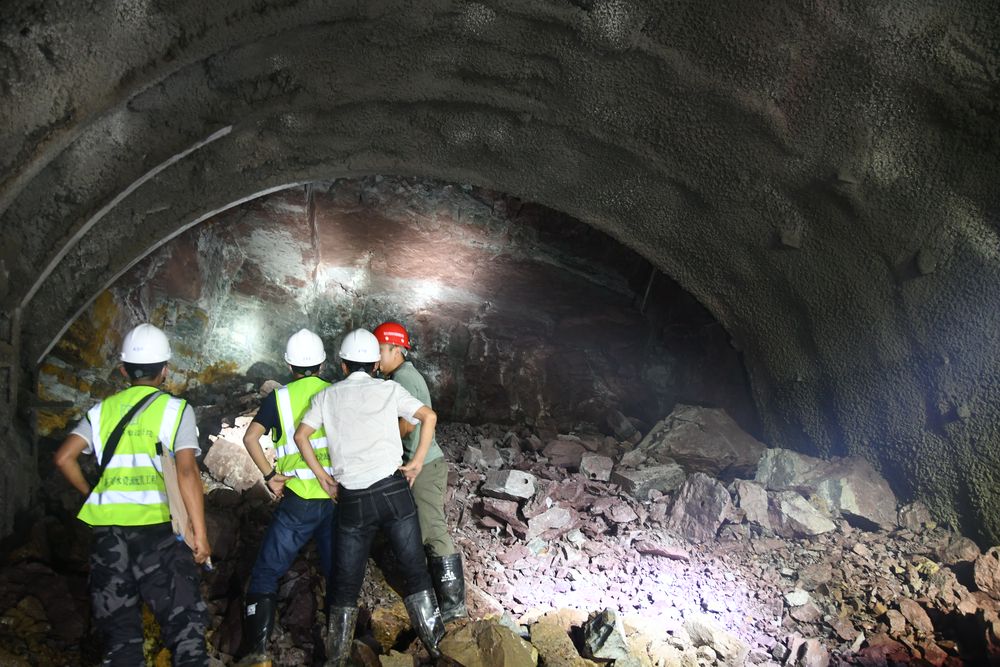 罗田检修交通洞开挖至桩号0+242位置,围岩以紫红色泥质粉砂岩为主,局部夹有灰色粉砂岩,岩芯较新鲜;围岩类别以IV类为主,局部夹III类。侧墙围岩稳定,拱顶围岩沿层面易掉块造成超挖。