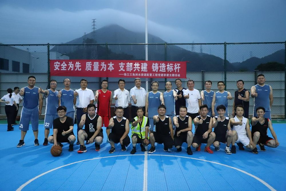 中午,茂总一行来到SZ02井现场,并在此举行党建宣誓活动,向党组织表决心。晚上,在罗田管理部营地,业主、设计组成粤海队与14局、11局以及长江监理组成的电建队进行了一场精彩纷呈、别开生面的篮球赛,最终粤海队在电建队的车轮战下,以4分惜败!