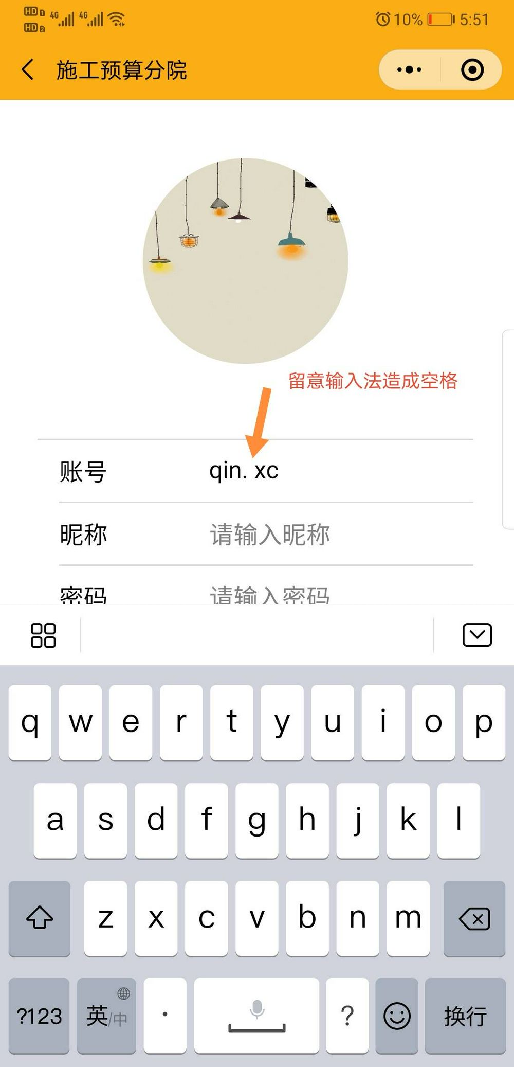 登陆小程序,注意用户名的点号后面有可能被您的输入法自动加上空格,请删掉空格。