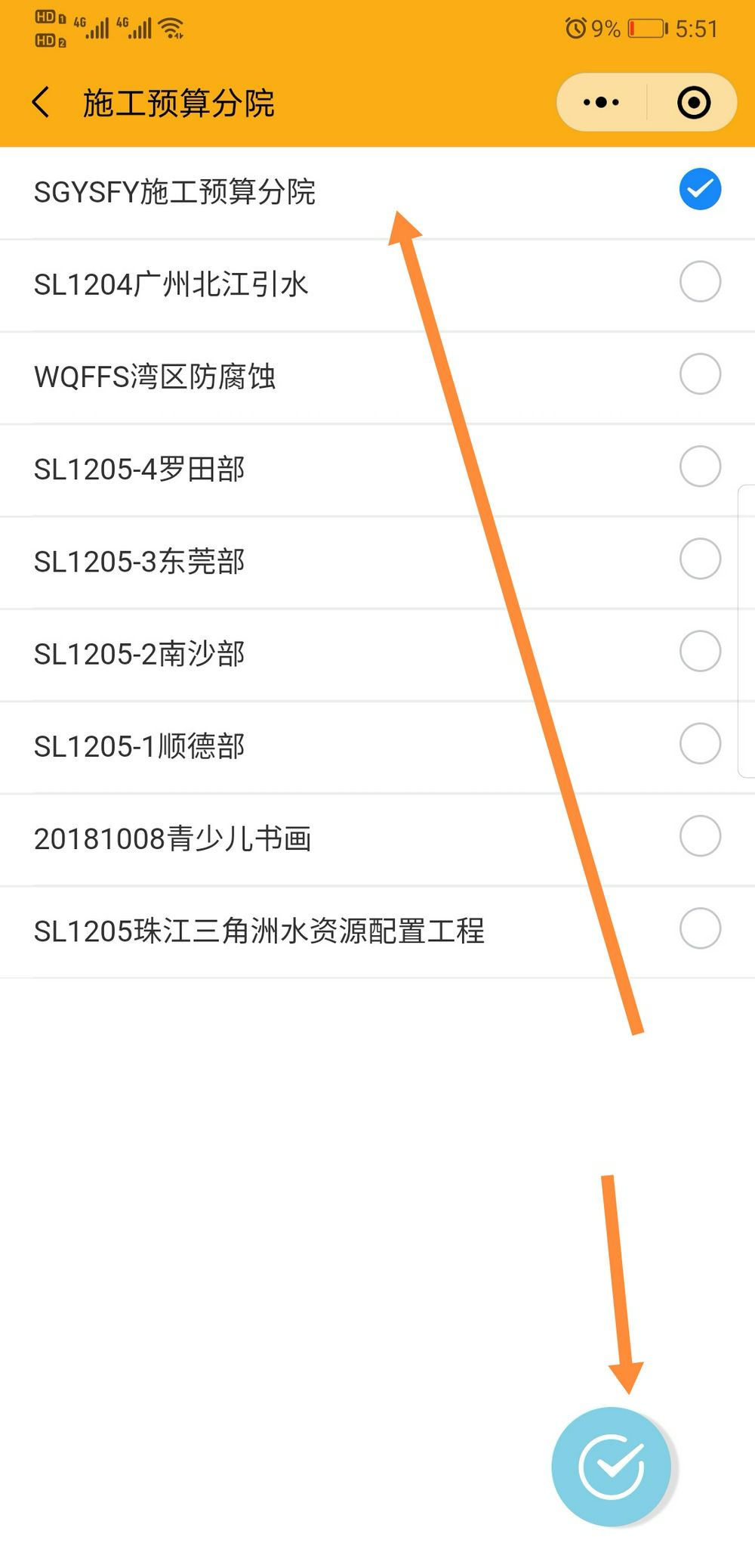 选择施工预算分院,自动切换。