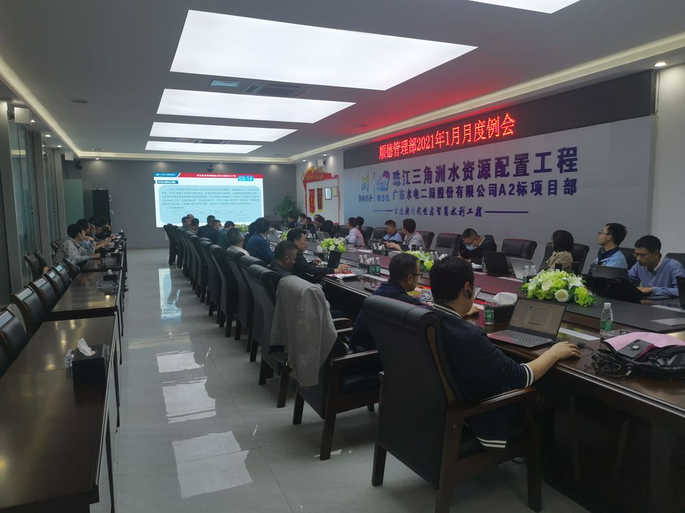 2021年1月28日,顺德管理部副总经理石文广在土建施工A2标项目部会议室主持召开顺德段1月度例会。